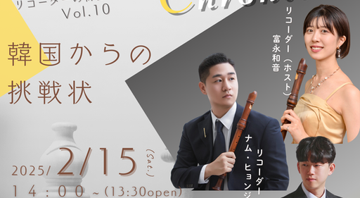 This is Kazuon Tominaga's first recital, and it is a concert that looks back on his student life and collects songs that he has fond memories of. 2023/04/09 (Sun.) Location: Space 415 J.V.Eyck: Beautiful Daughter Daphne M.Blavet: op.3-2 J.S.Bach: BWV1035